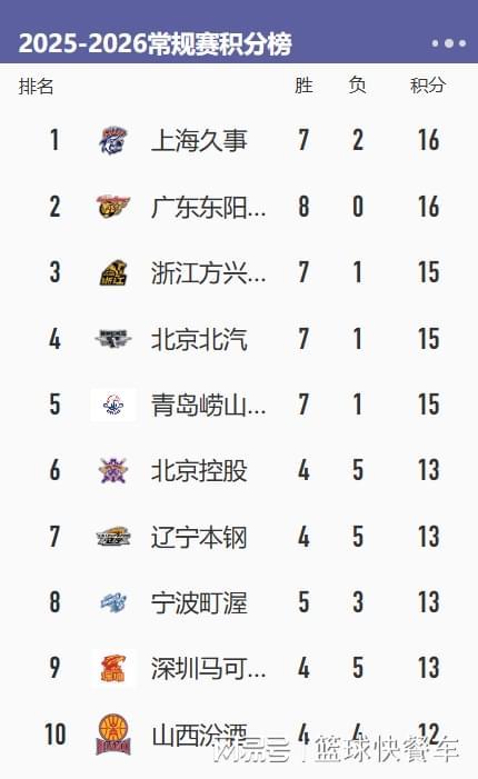 附:CBA积分榜最新排名